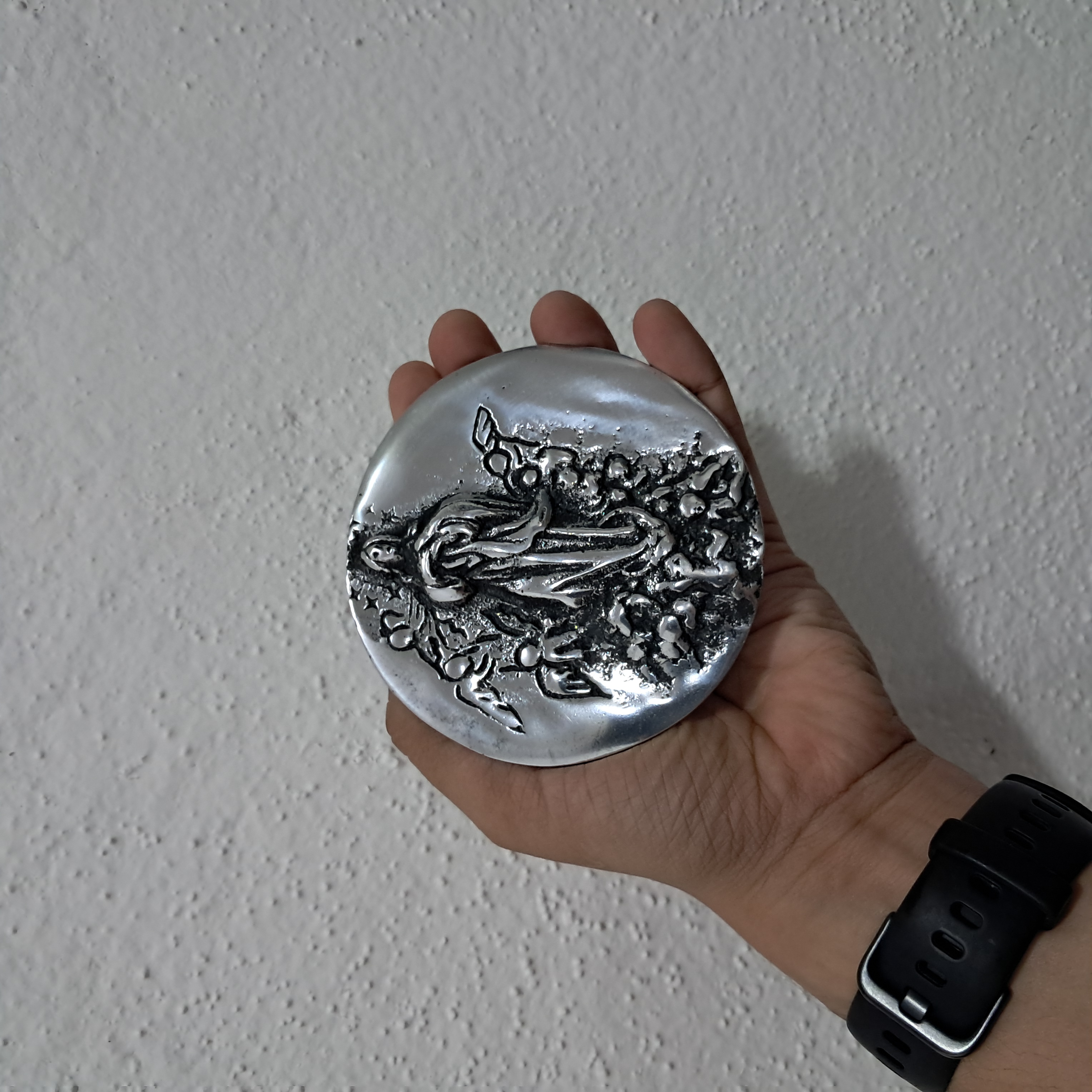 Hermoso medallón de la Purísima, Concepción de María. Hecho en pewter. Ideal para colgar en la pared, en tu espacio de oración, y también para obsequiar para algún evento social, sacramento, aniversario luctuoso o rezo de la Purísima.