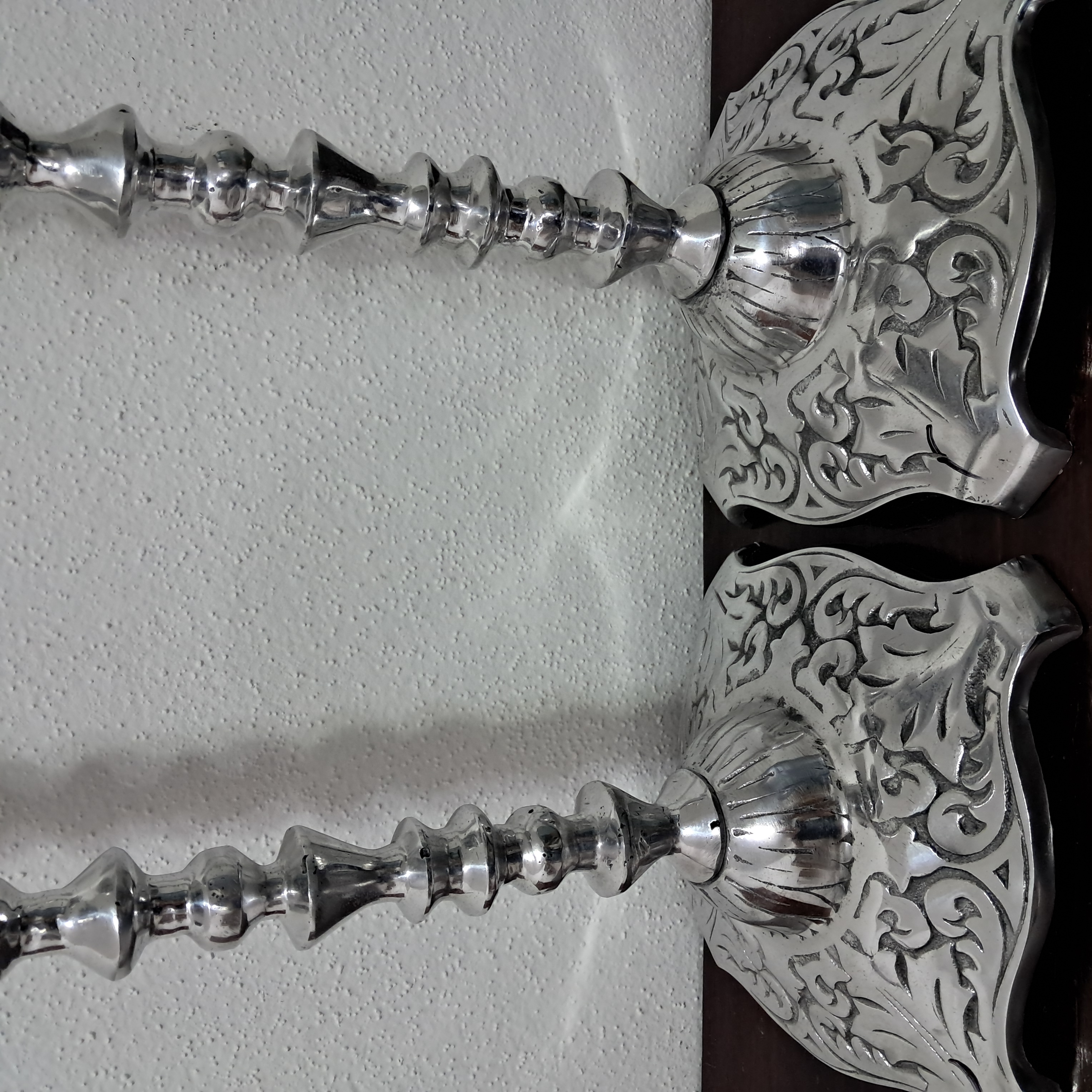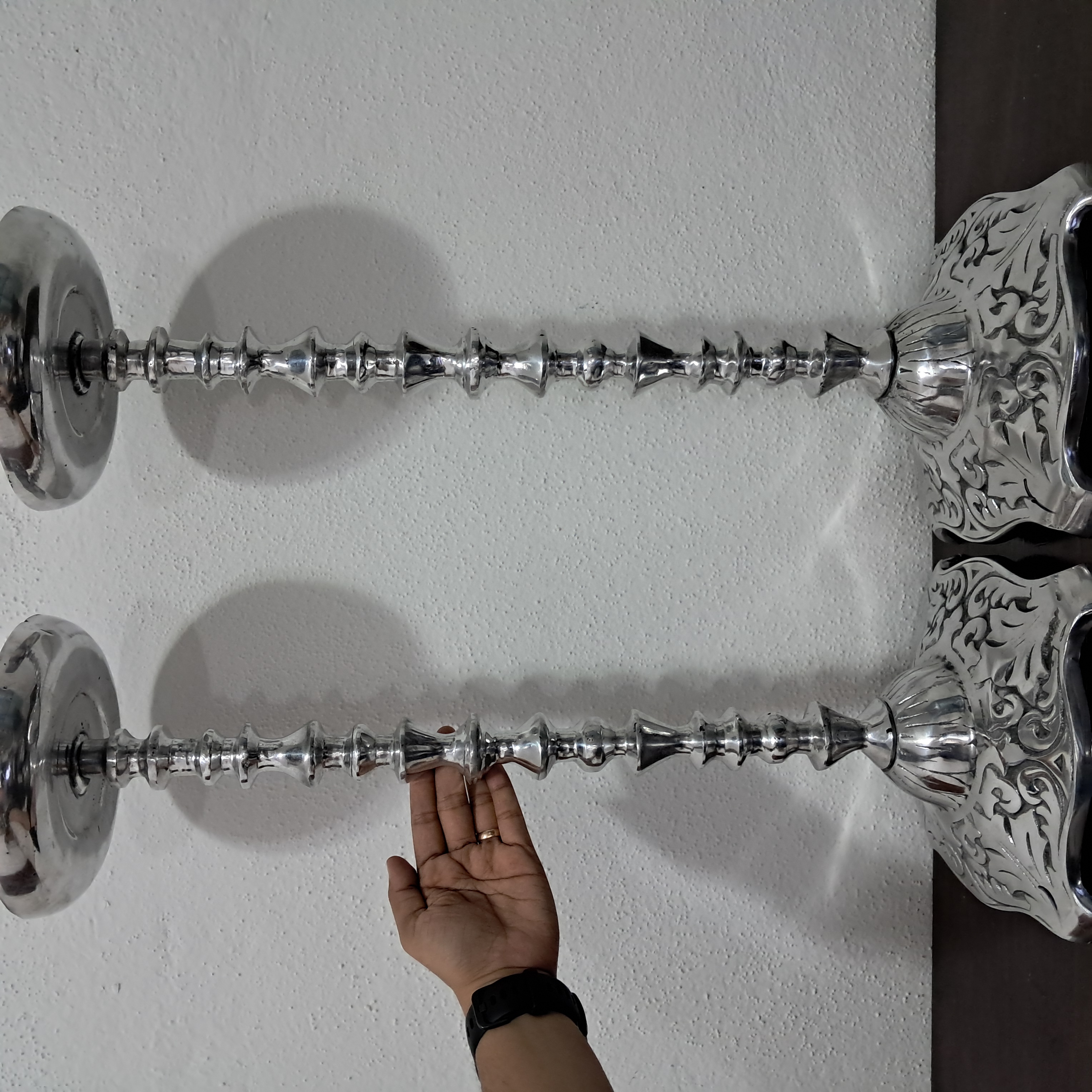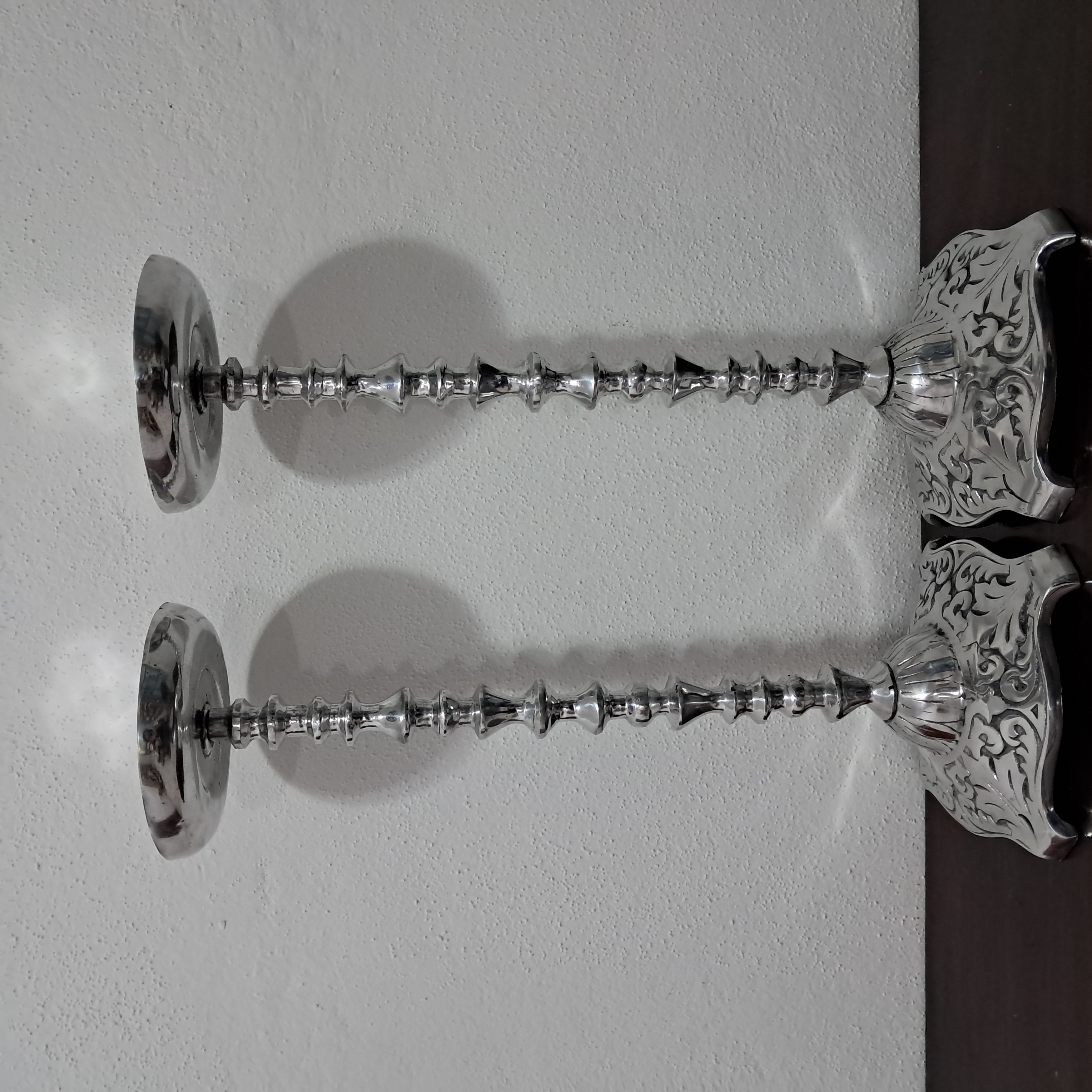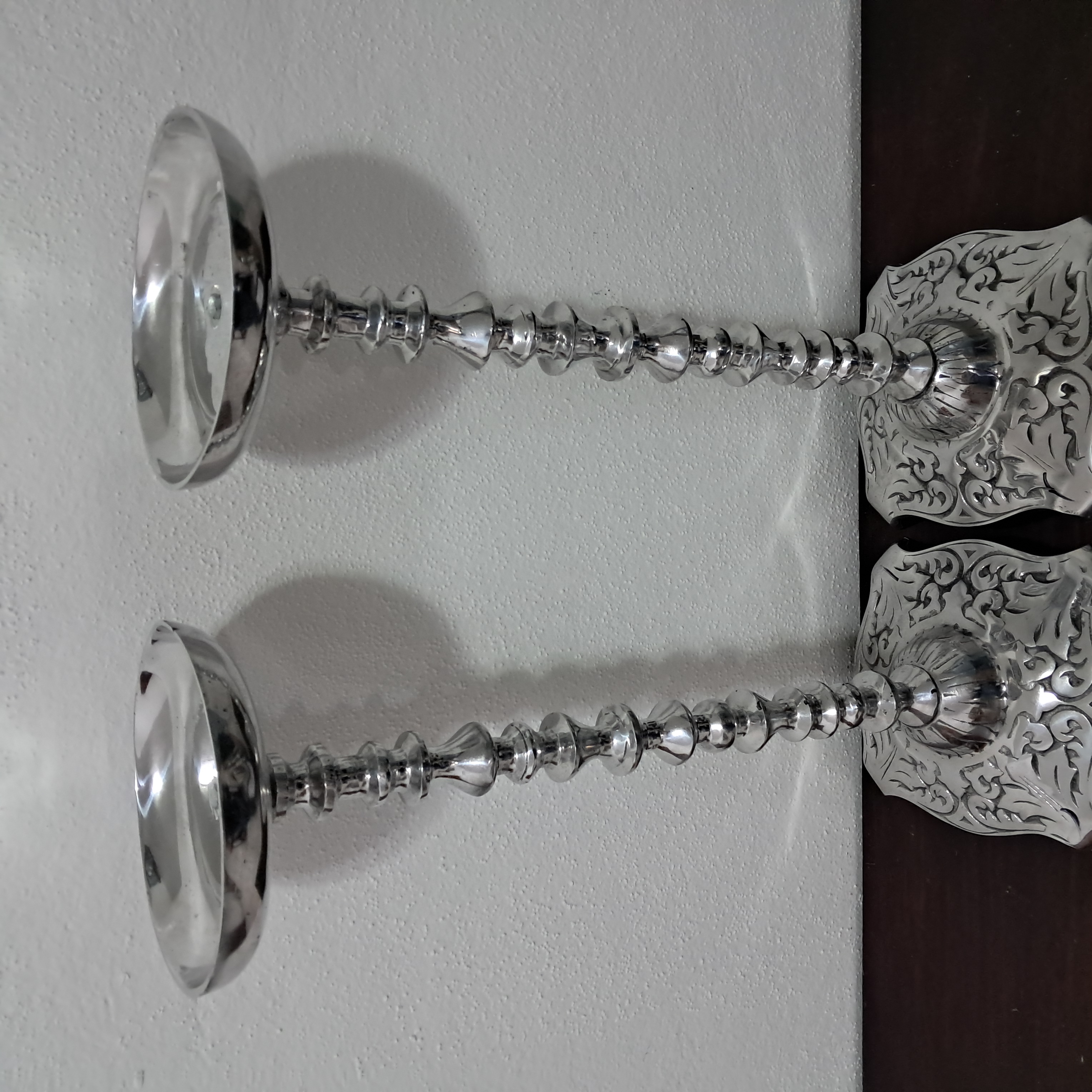 Hermosos pedestales de pewter ideales para colocar cirios o floreros. Se ven elegantes en altares, decoraciones de centro de mesa para eventos, o algún detalle e la sala como para ceniceros junto a sofás u otro elemento decorativo que gustes.