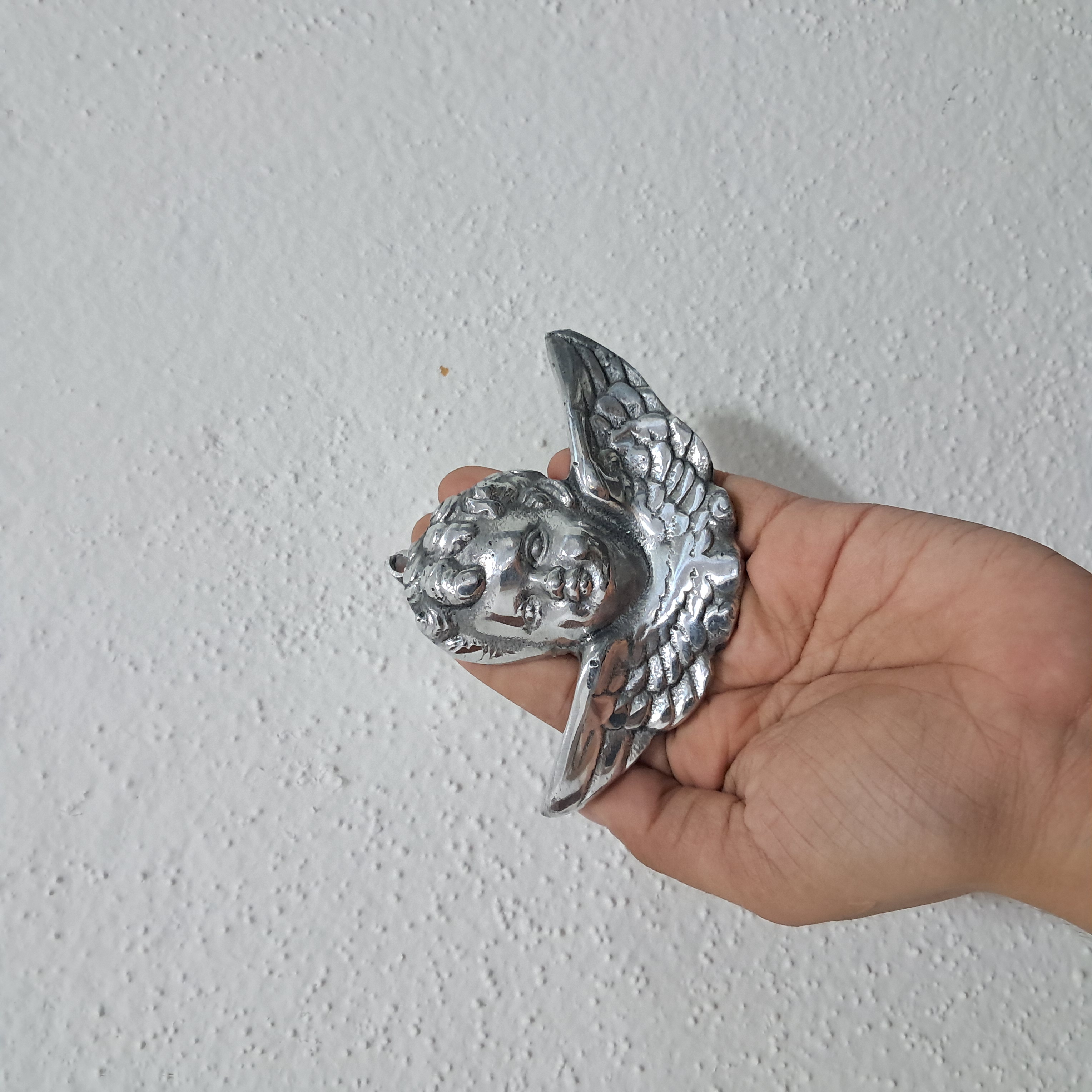 Hermoso querubín de pewter para adornar en el hogar, en los altares católicos o para obsequiar en algún sacramento o evento social.