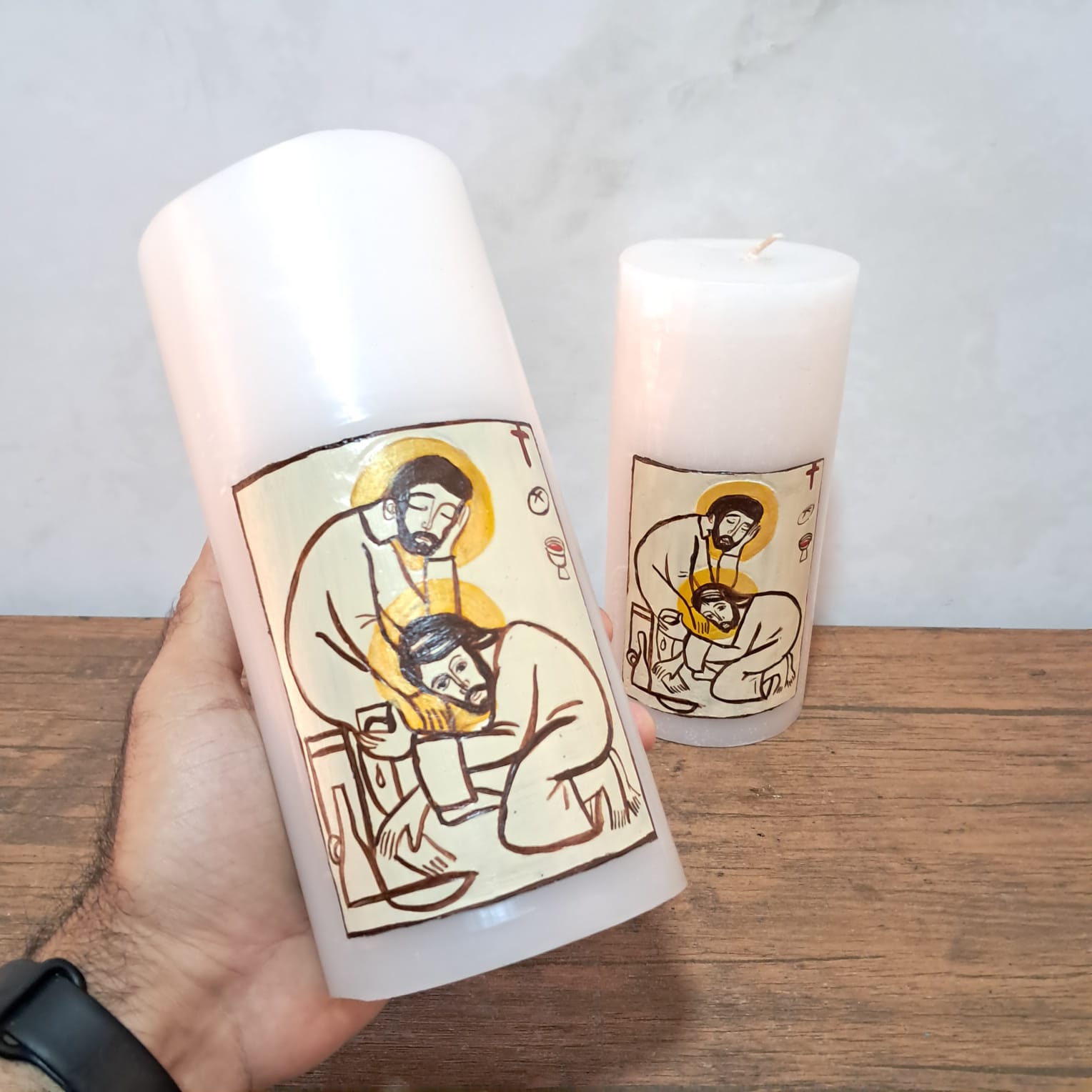 Elaborada con dedicación y materiales de alta calidad, esta vela transmite el espíritu de la Pascua y la invitación a vivir la fe desde la humildad y el servicio. Perfecta para altares, celebraciones comunitarias y momentos de oración profunda.