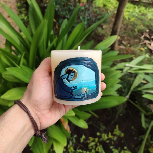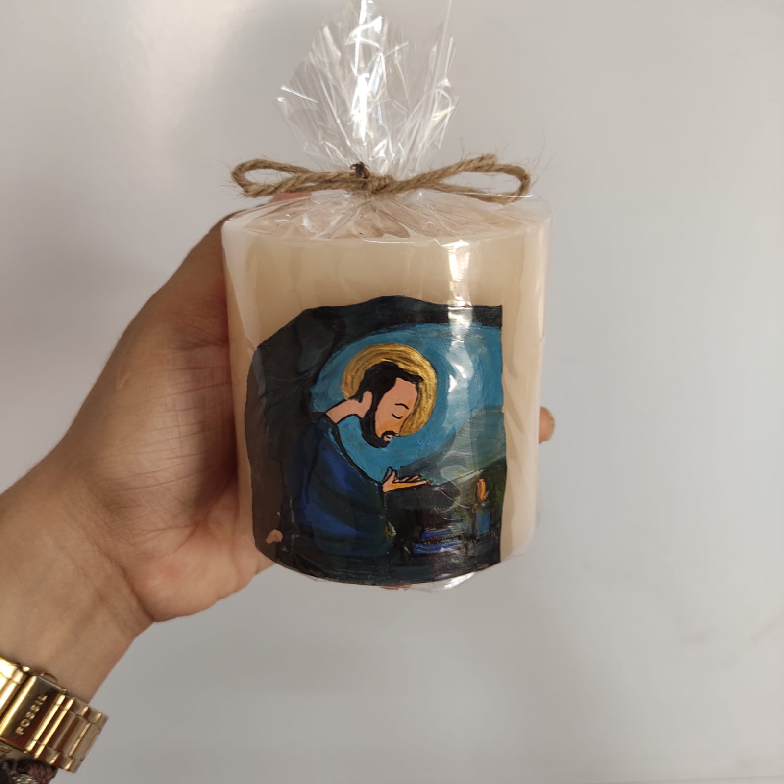 Hermosas velas de 7.5 x 7.5cm con agradable aroma. Arte personalizable sobre algún santo o devoción particular.  Ideal para ocupar en tu espacio de oración.